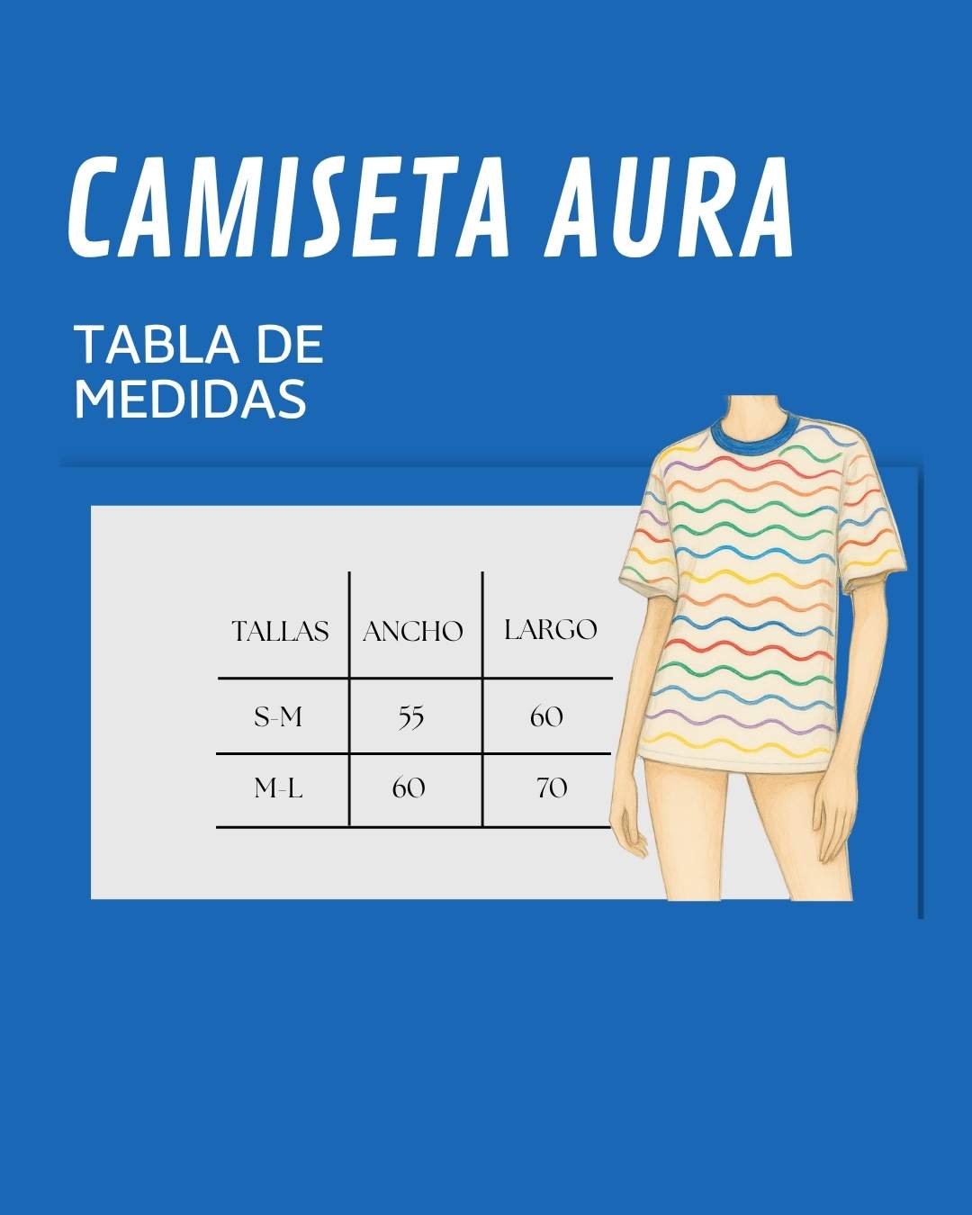Camiseta Aura, hecha en tela suave y resistente para máximo confort. Con un diseño de líneas curvas de colores horizontales, esta prenda oversize y unisex es perfecta para quienes buscan estilo y autenticidad en cada ocasión. -El modelo está usando una talla M-L, y mide 1.80 de altura.